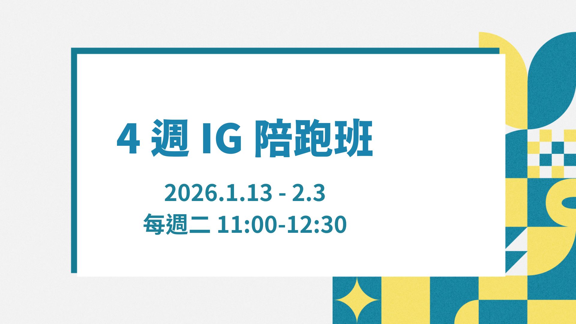4 週 IG 陪跑班|2026.1.13 起
